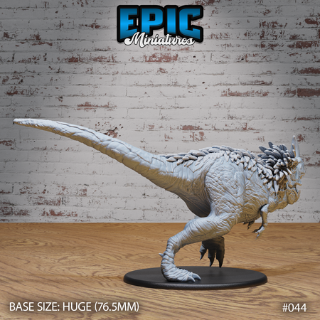 One 3D printed Horned Rex Chasing - 2 variations with base in 32mm scale. Other scales available including 28mm. Huge Size.