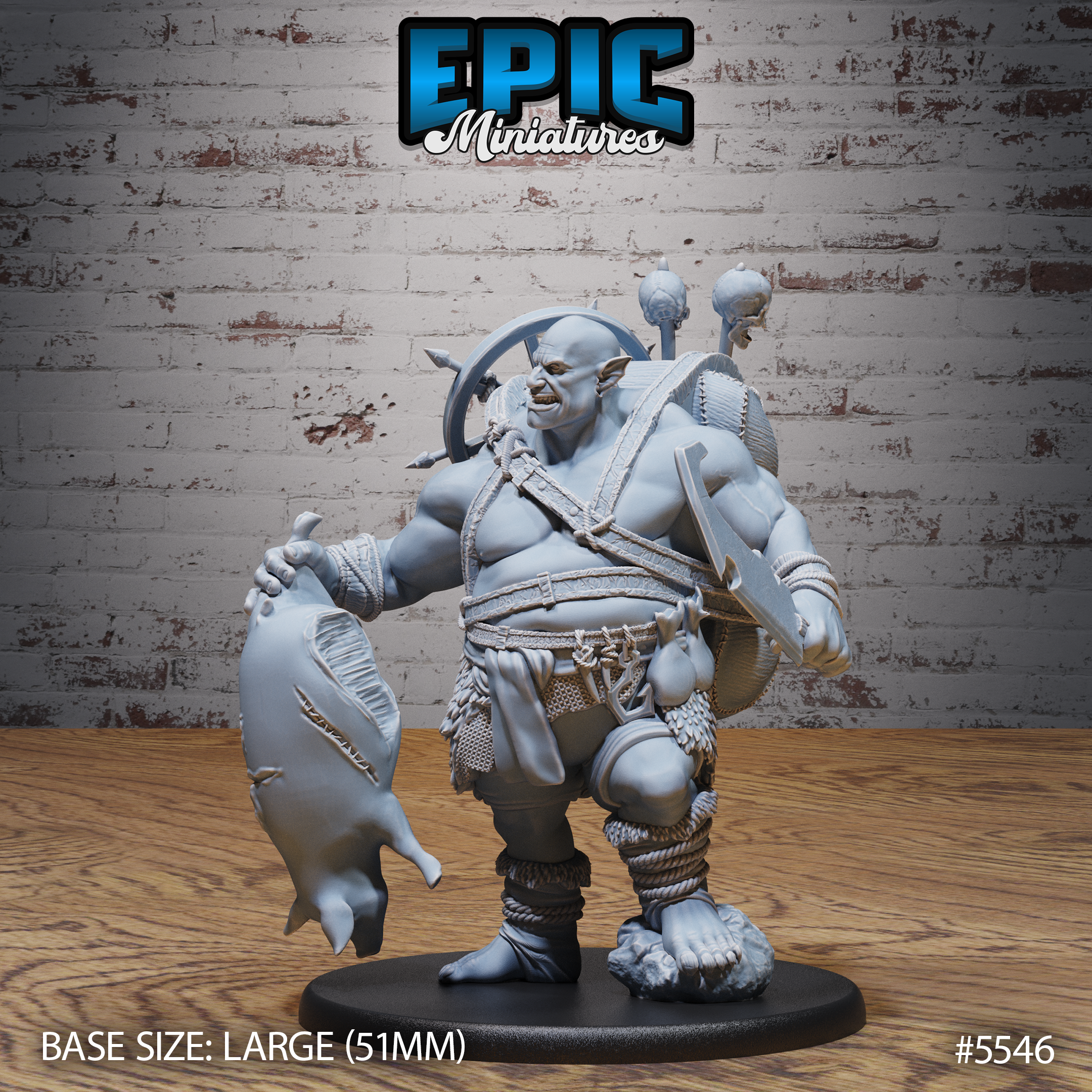 One 3D printed Ogre Butcher Pig with base in 32mm scale. Other scales available including 28mm. Large Size.
