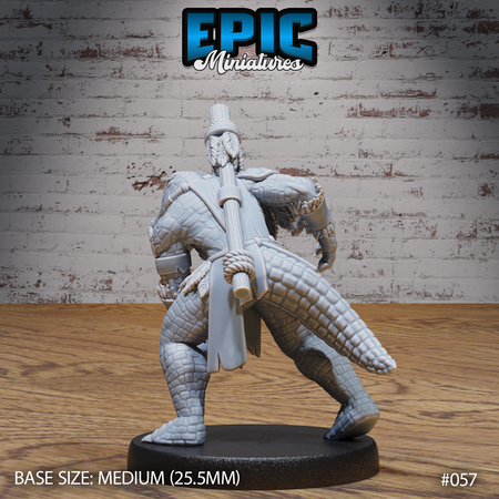 One 3d printed Alligator Folk Shaman, with base in 32mm scale. Other scales available including 28mm. Medium Size.