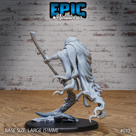 One 3d printed Ancient Wraith Swinging, with base in 32mm scale. Other scales available including 28mm. Large Size.