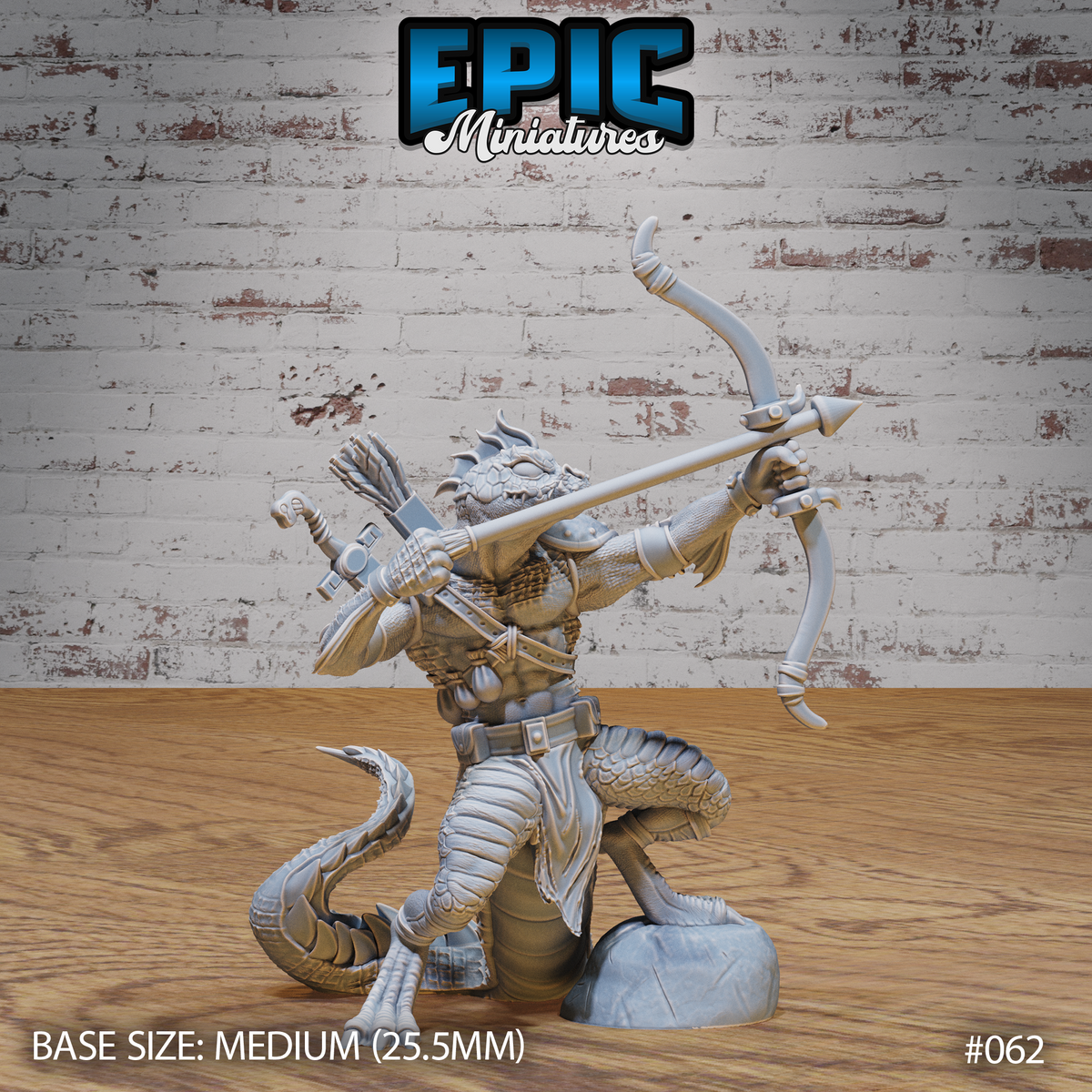 One 3D printed Bandit Lizard Folk Firing Bow, with base in 32mm scale. Other scales available including 28mm. Medium Size.