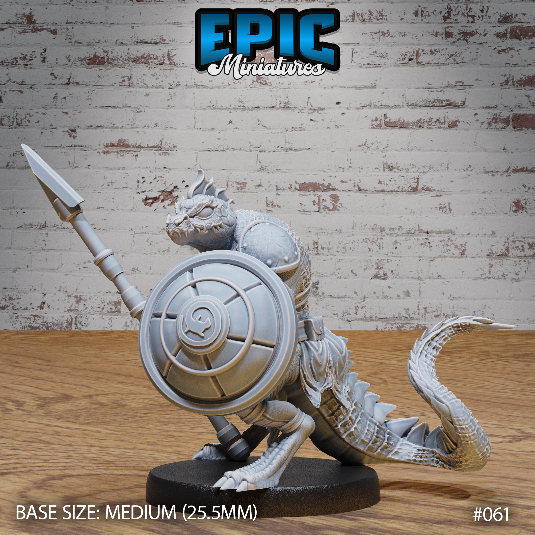 One 3D printed Bandit Lizard Folk Spear with base in 32mm scale. Other scales available including 28mm. Medium Size.