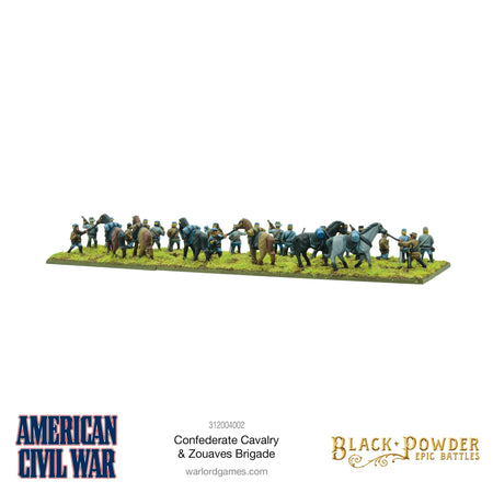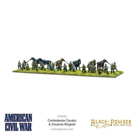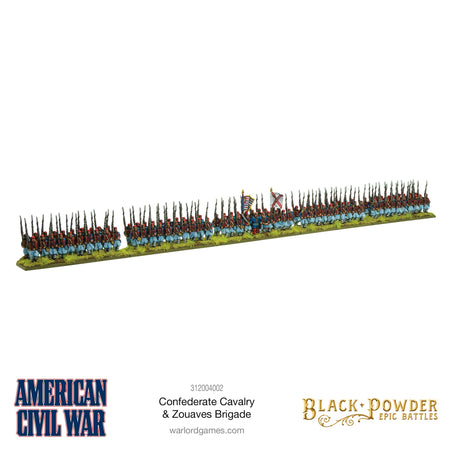 This plastic set provides enough models to field a complete Confederate brigade comprising one Zouaves regiment of 100 men, a regiment of cavalry a regiment of dismounted cavalry, and a regiment of skirmishers.