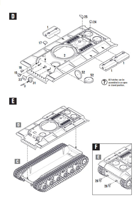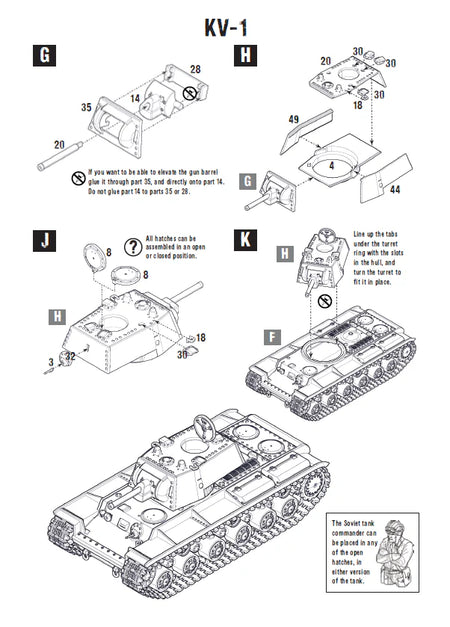 Enough plastic components to create one tank body and both complete turret variants (KV-1 turret and KV-2 turret)!