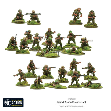 The Island Assault starter set has everything you need to play games of Bolt Action and start recreating these campaigns, as the US forces sought to reclaim the Japanese advances, from the Phillipines to Iwo Jima and Okinawa. The set includes plastic miniatures and terrain, as well as everything else you need to start fighting the vicious jungle battles :