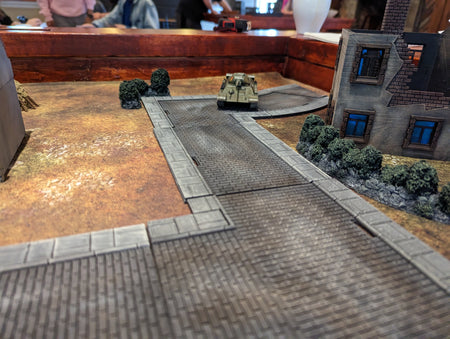 City cobblestone wide road sections in different configurations. Here is a selection to get started. Additional individual pieces can be added with the basic set. PM for a list and quote.