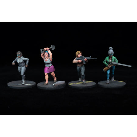 This hard plastic box set includes enough parts to build 24 28mm figures. There are six unique bodies, enough arms to make all of them fleeing if you want, and a huge mix of weapon arms. Weapon arms include: shovels, baseball bats, machetes, double barreled shotguns, semi-auto shotguns, pump shotguns, AR-15s, semi-automatic pistols and revolvers, Uzis, and hunting/sniper rifles. And to top it off there are 21 unique heads with a total of 84 heads in the box!
