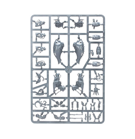 The Wracks can be equipped with a host of interchangeable weapons and equipment, including torturer's tools, two liquifier guns, two ossefactors, two hexrifles, two stinger pistols, masks, and backpacks. There are also parts to build an Acothyst who can additionally be armed with an agoniser, power weapon, or scissorhand.