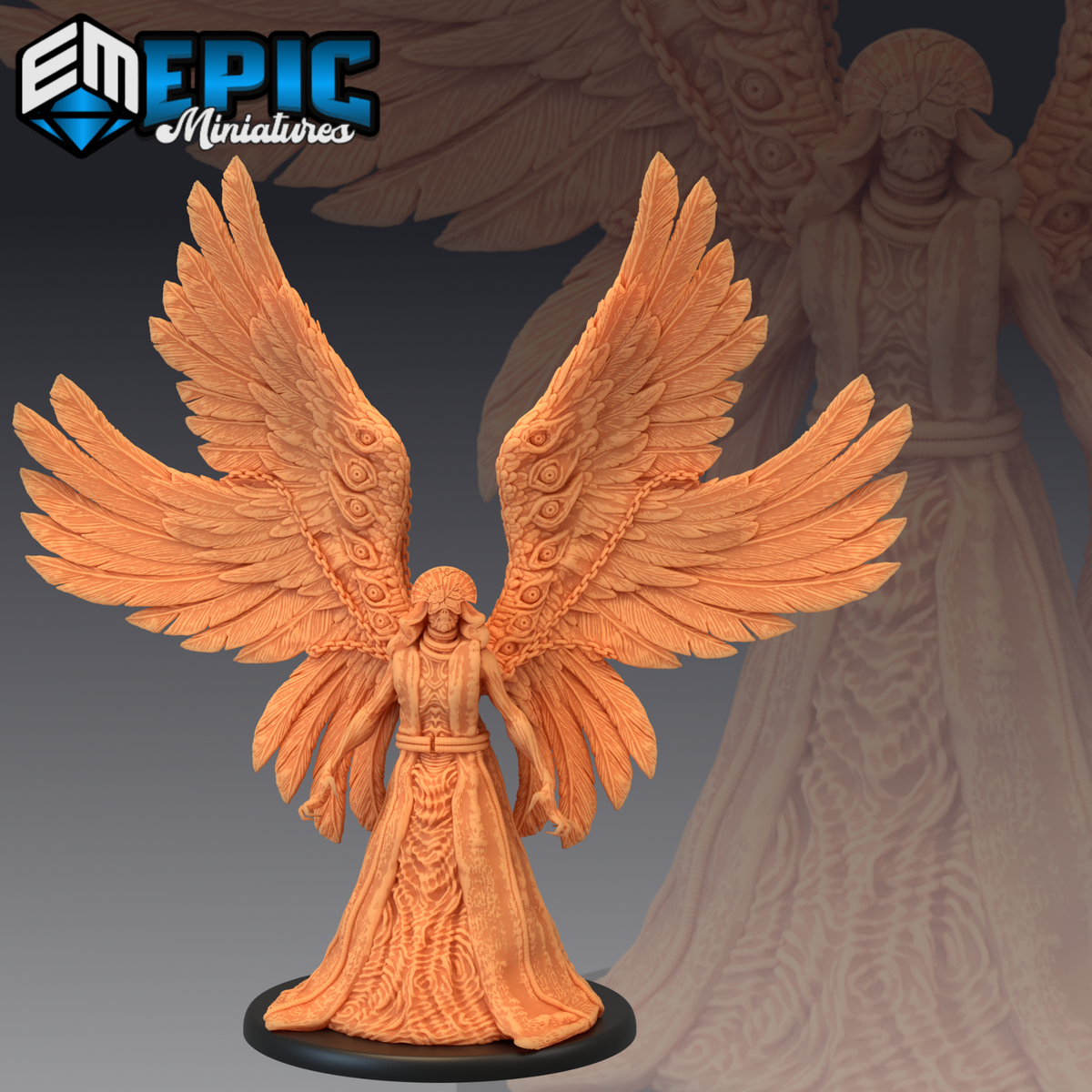 One 3D printed Corrupted Seraphim with base in 32mm scale. Other scales available including 28mm. Large Size.