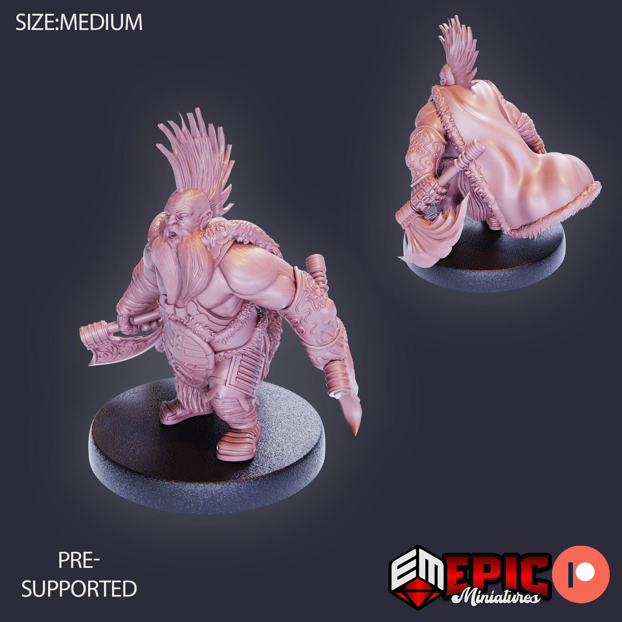 One 3D printed Dark Dwarf Lord with base in 32mm scale. Other scales available including 28mm. Medium Size.