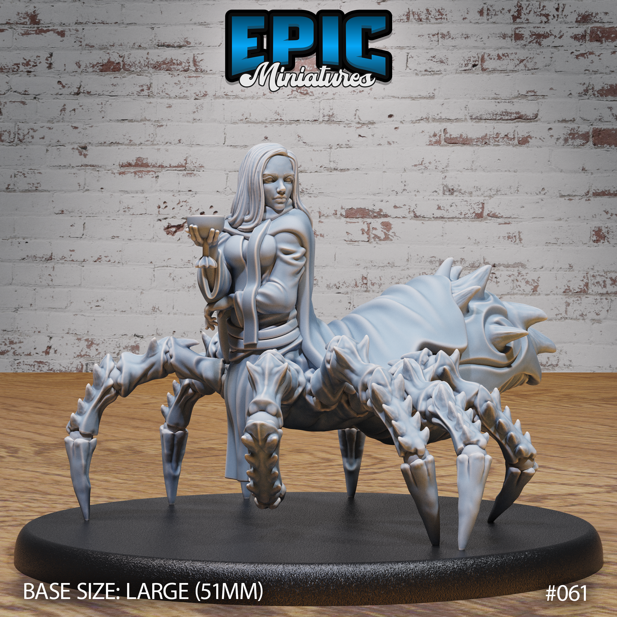 One 3d printed Dark Elf Drider Folk Priestess, with base in 32mm scale. Other scales available including 28mm. Large Size.