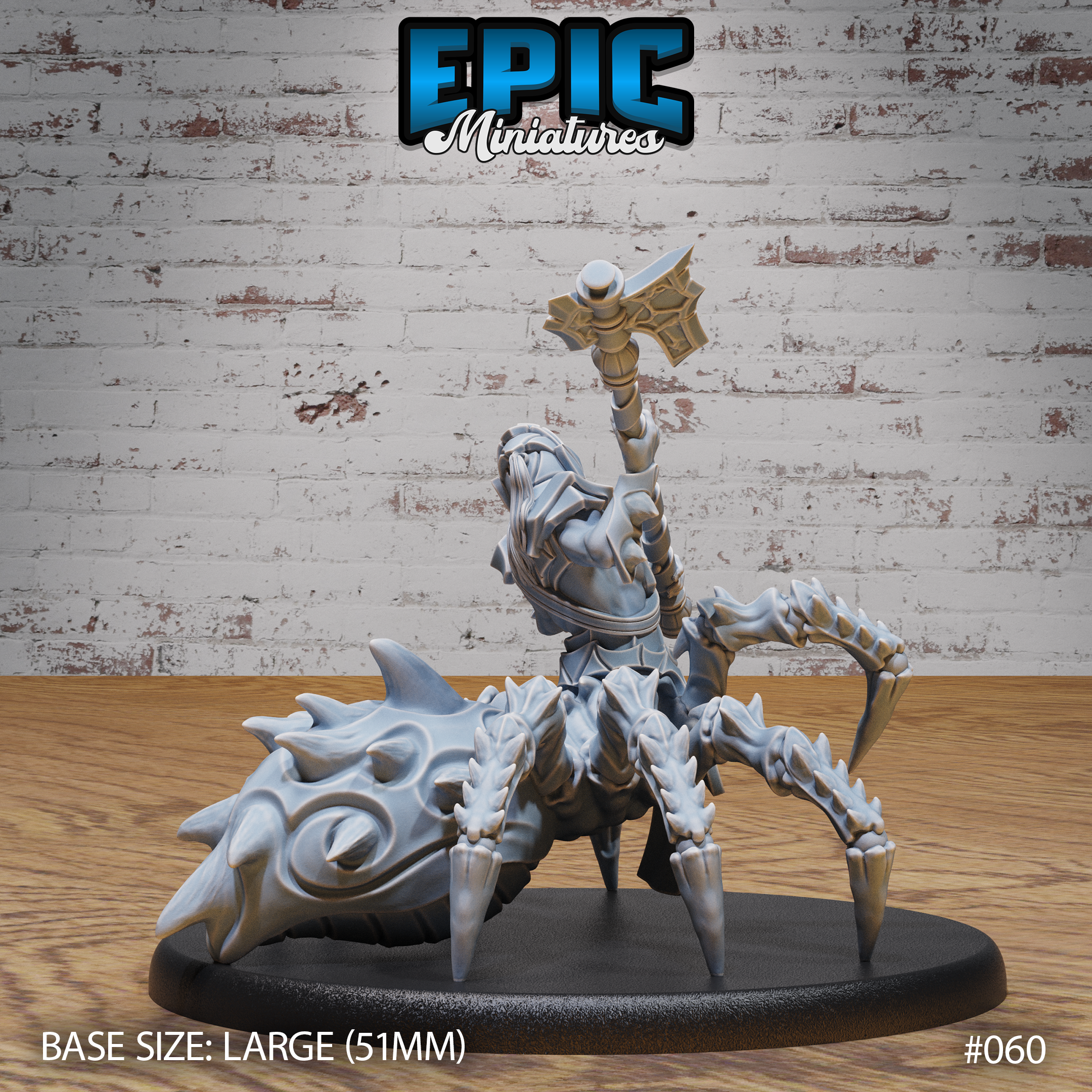 One 3d printed Dark Elf Drider Folk Warrior, with base in 32mm scale. Other scales available including 28mm. Large Size.
