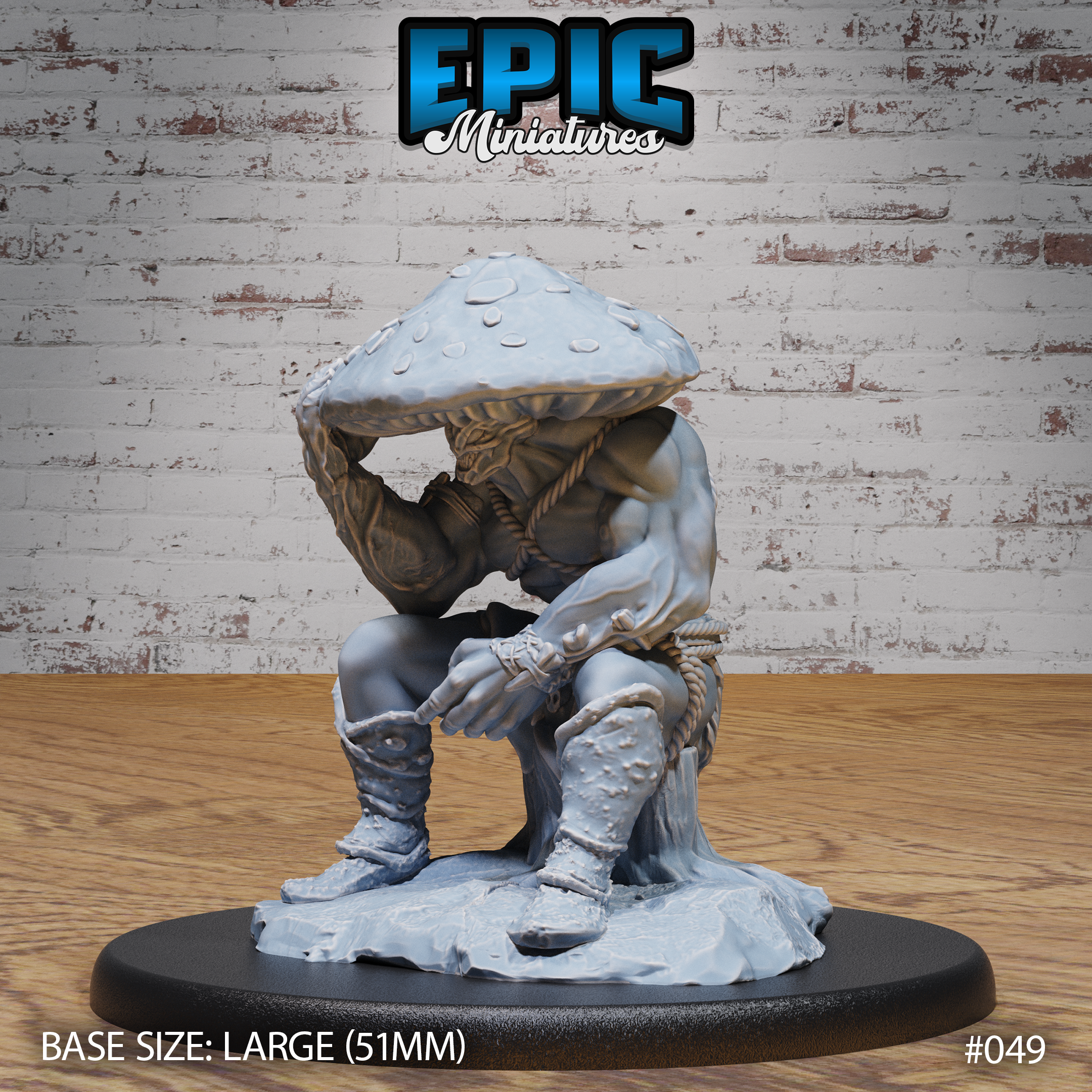 One 3d printed Dark Elf Mushroom Folk Barbarian Sitting 3D Print, with base in 32mm scale. Other scales available including 28mm. Large Size.