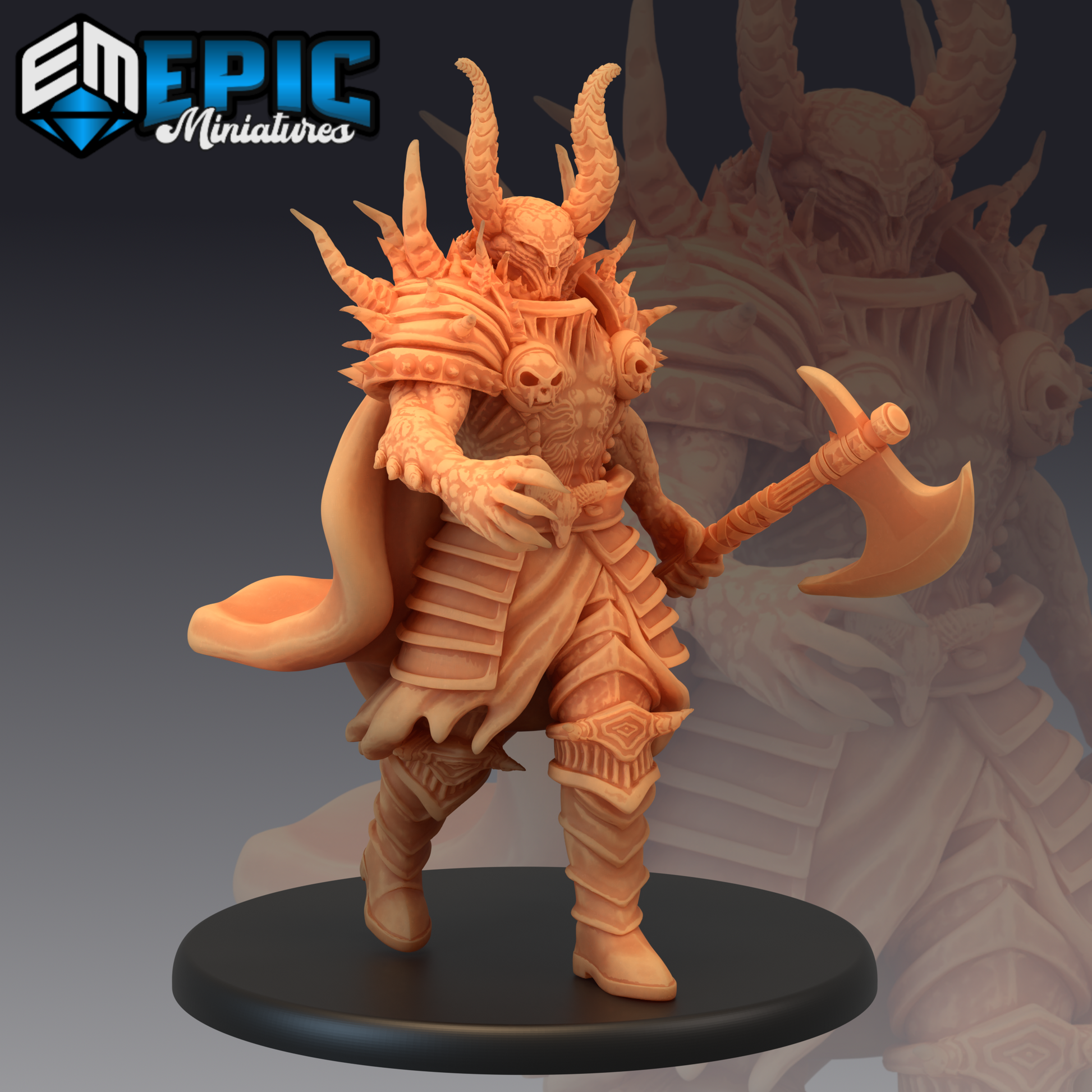 One 3D printed Devil Warlord Axe with base in 32mm scale. Other scales available including 28mm. Large Size.