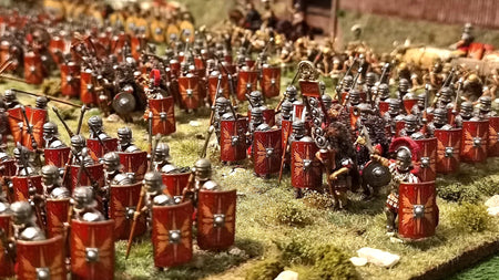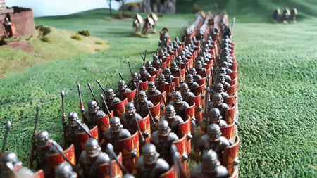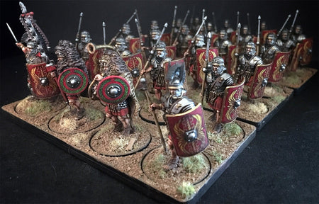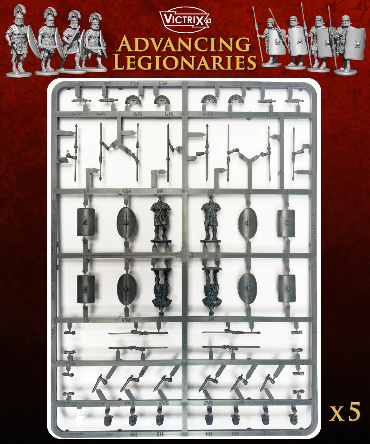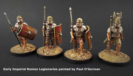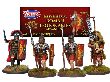 This set includes 25 highly detailed 28mm miniatures. The Early Imperial Roman Legionaries Advancing contains a myriad of additional weapons and armour, allowing for hundreds of different options when building the figures. Oval scutums and transverse crests included so that you can build your force as Praetorian Guard.