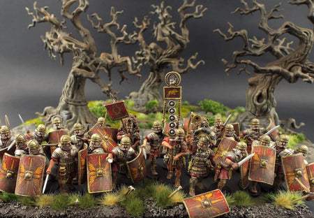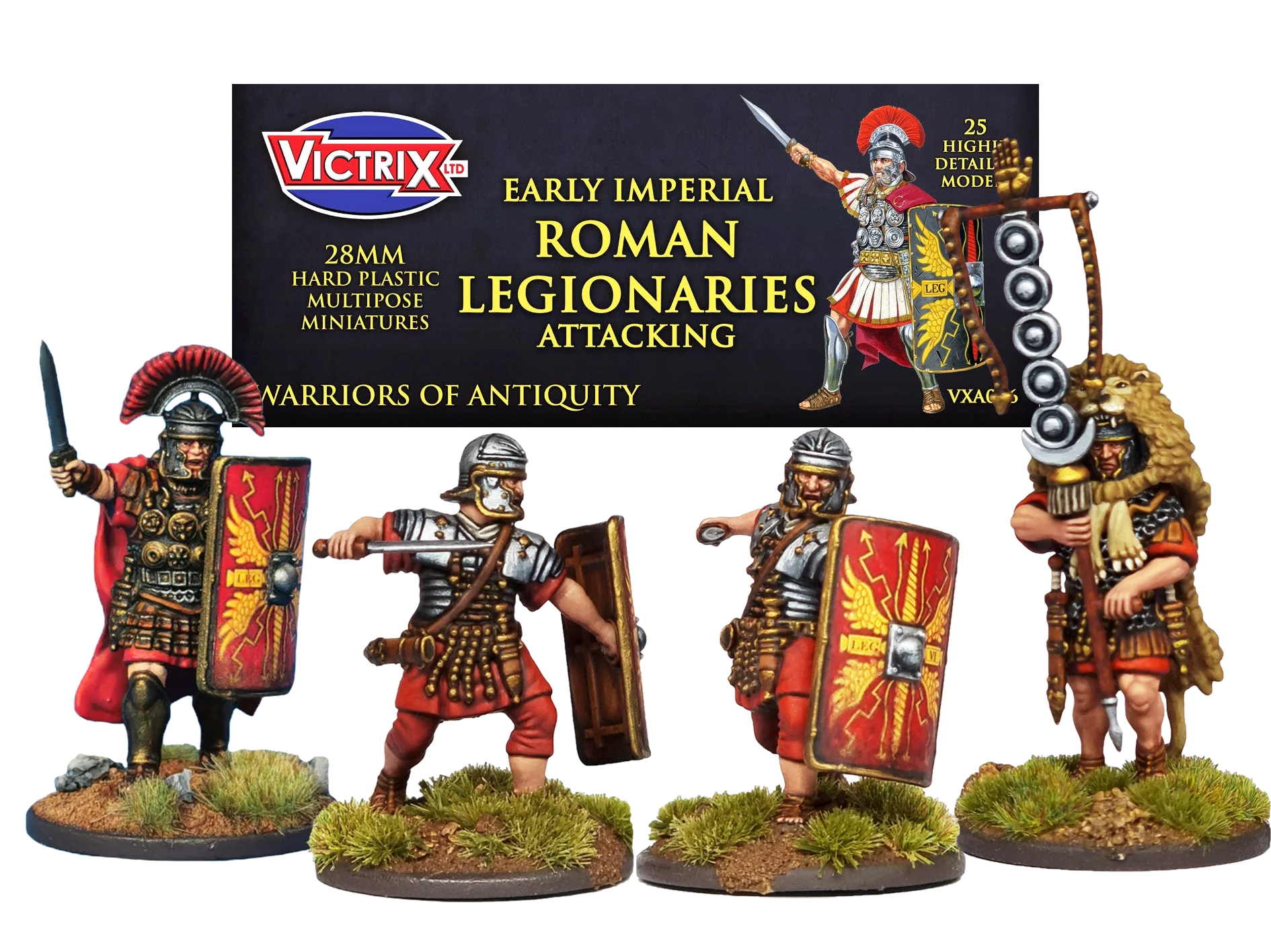 25 high quality 28mm miniatures. The Early Imperial Roman Legionaries Attacking are superbly detailed and include a myriad of additional parts, allowing for hundreds of options when assembling.