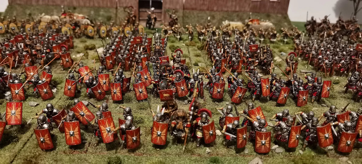 This set contains numerous head options with reinforced helmets for the wars with Dacia, shields and crests for Praetorias. Shields and crests can be customised to your liking with the LBMS shield transfer range.