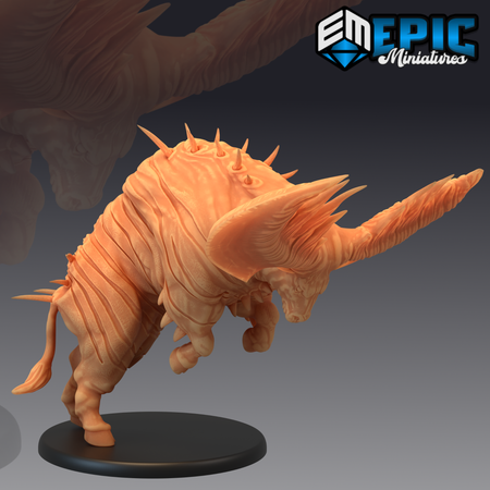 One 3D printed Epic Bull Attacking with base in 32mm scale. Other scales available including 28mm. Large Size.