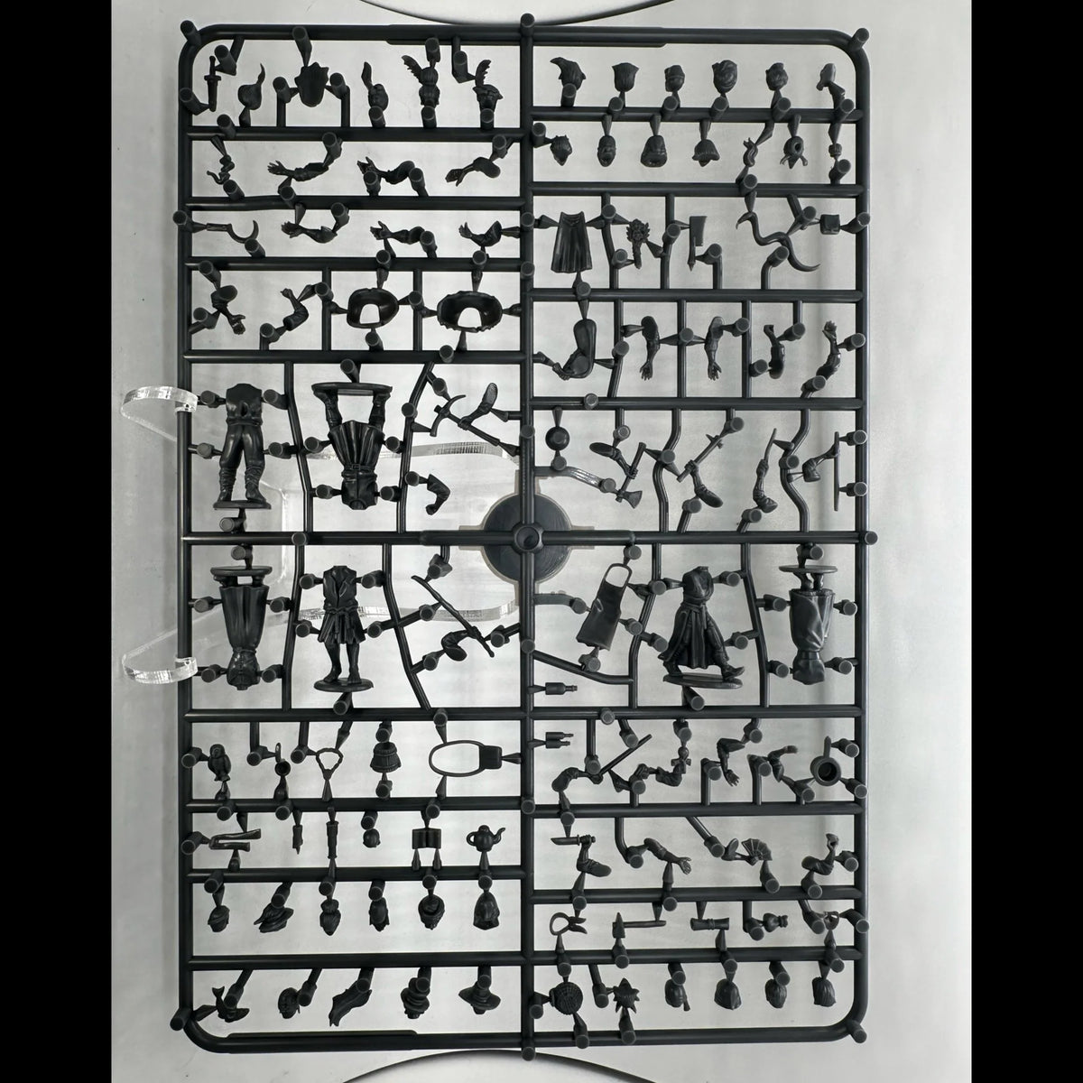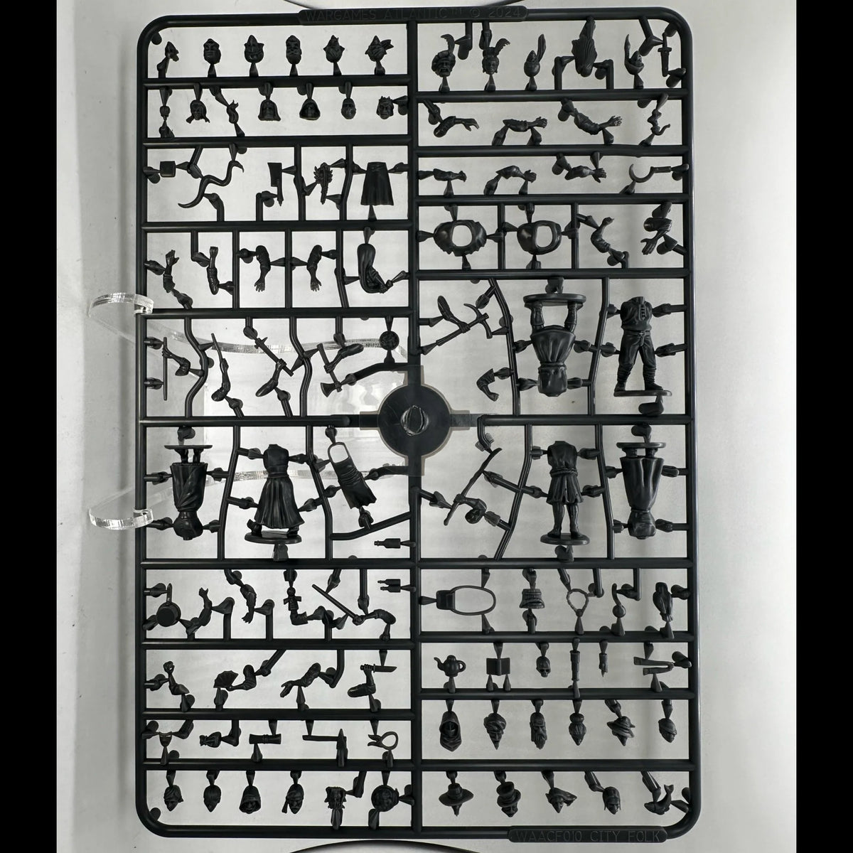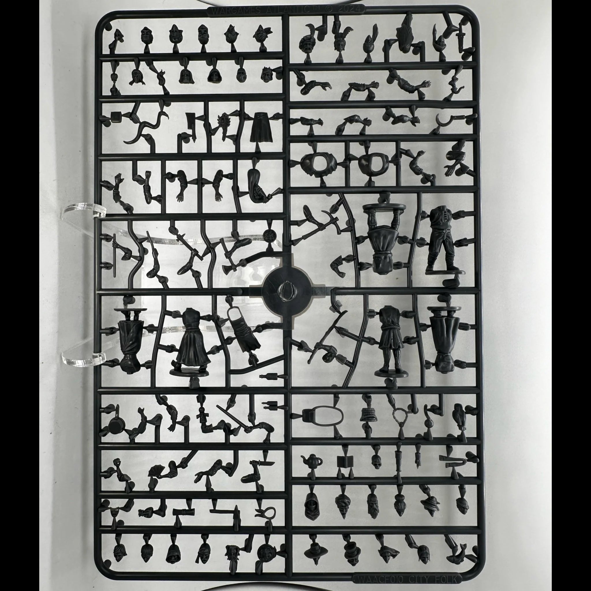 This hard plastic box set allows you to build up to 24 villagers. There are three unique male and female bodies on the frame representing the poor, middle class, and wealthier citizens. Add on clothing items, open hands with lots of extra bits, and 30 unique heads allow for massive customization!