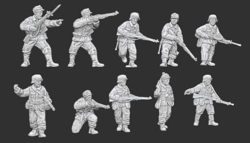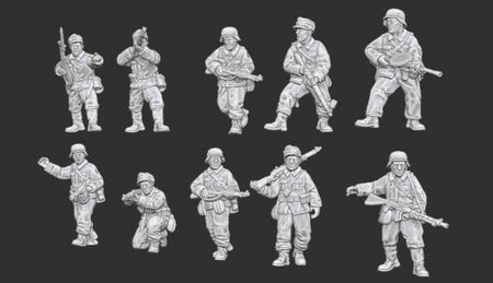 Ten man 3D Printed Finnish Infantry section in summer uniforms armed with a variety of weapons. Includes ten miniatures and bases. Scale 1/56. - 28mm. Other scales available.
