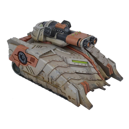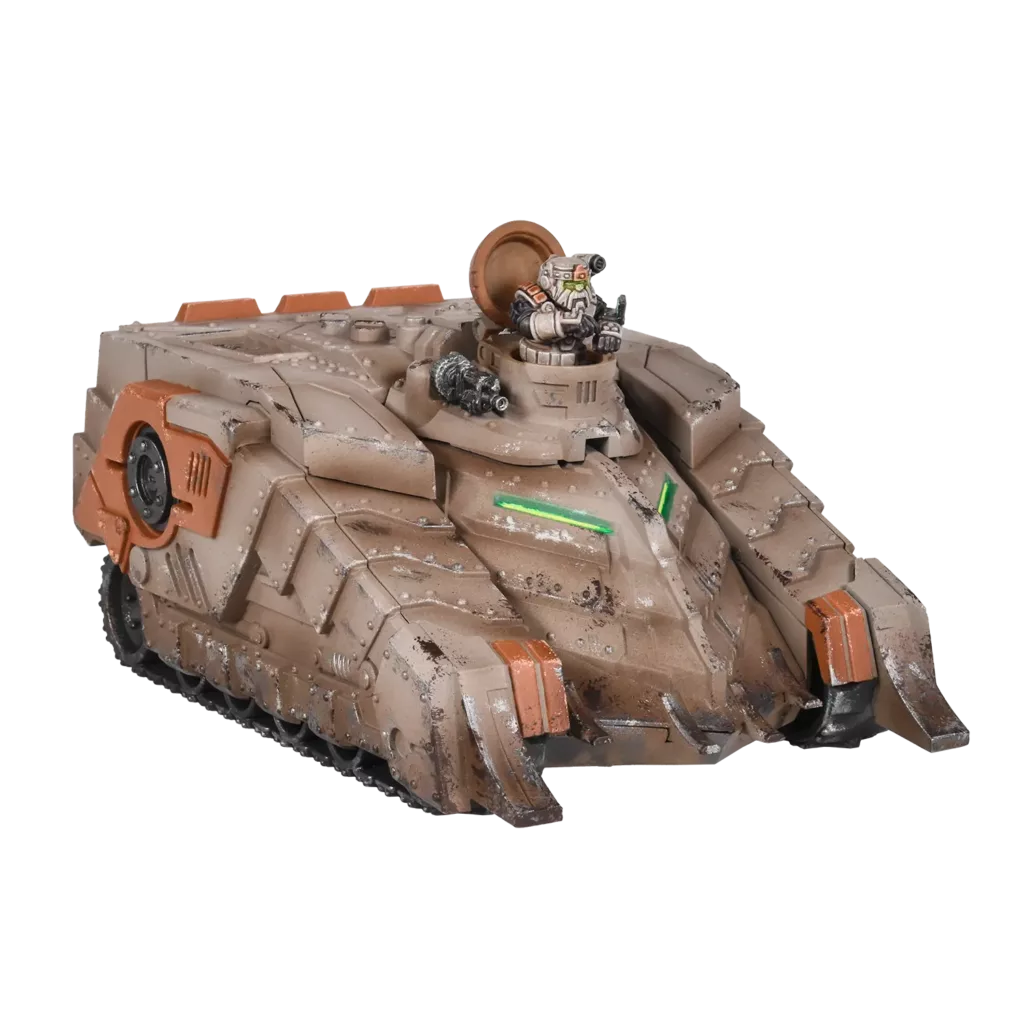 A classic Forge Father formation – a pair of Sturnhammers combined with the Karfi command tank. The Karfi is able to coordinate the orders and movement patterns of nearby friendly units, making their assault manoeuvres more efficient and deadly.