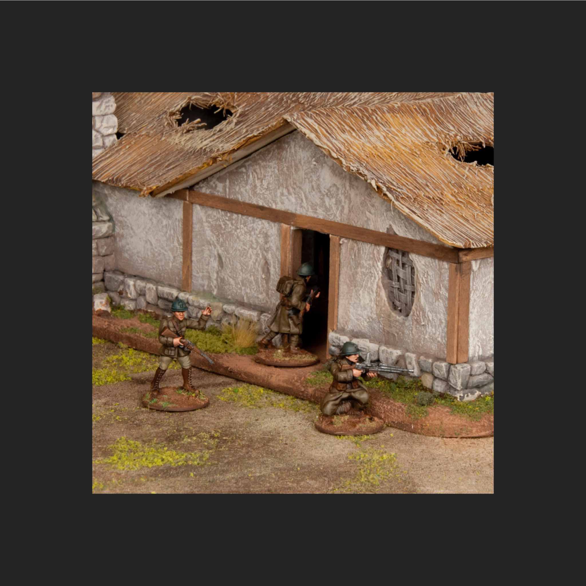This hard plastic set allows you to build up to 35 French infantry equipped for either World War One or World War Two (with enough of each type of rifle and heads for all figures in the box).