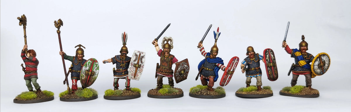 This superb set contains 30 x 28mm Gallic Armoured Warriors with a myriad of additional parts allowing hundreds of options when building the figures. This set is also supported by LBMS.