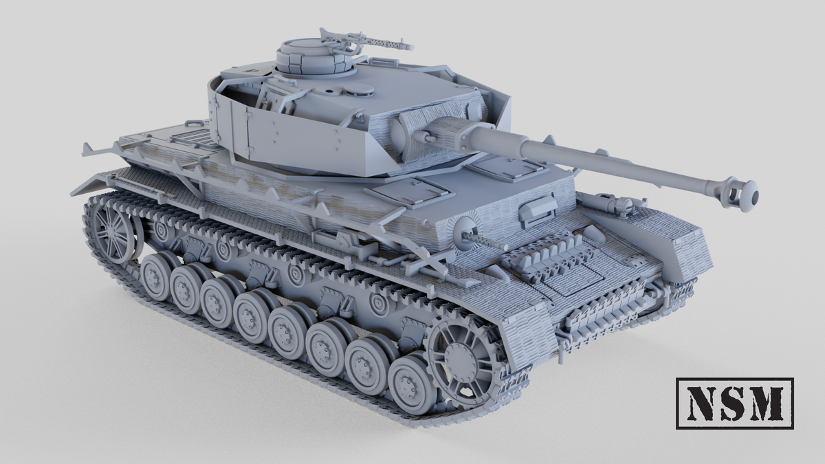 The Panzer IV J included many improvements over previous models but was unable to increase gun size as the chasis had reached its limit in terms of carrying weight. Model can include zimmerit as well as wire mesh skirts. Please specify which model is desired.