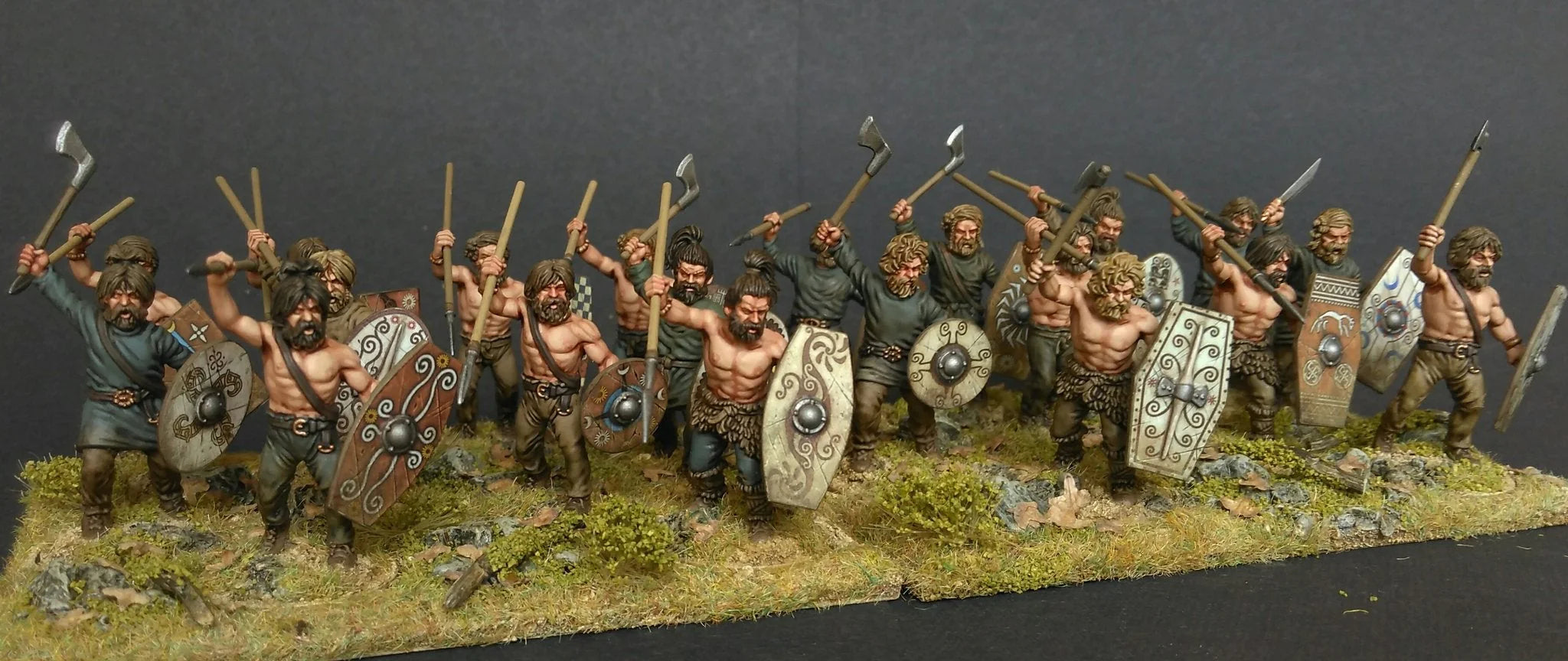This set contains 60 exceptionally detailed 28mm hard plastic Germanic Warriors, as well as numerous additional parts which allow you to pick and choose over a hundred different combinations when building your figures.