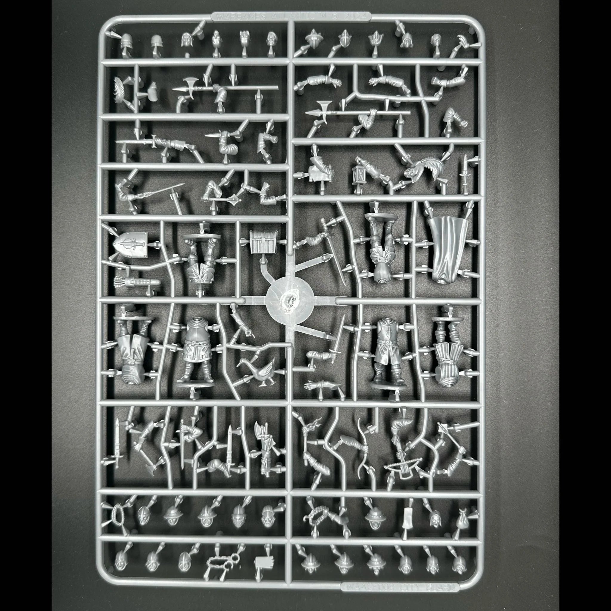 This hard plastic box set allows you to build up to 24 guards, adventurers, mercenaries, henchmen, or whatever else your imagination can do with this incredible assortment of parts! There are unique male and female bodies on the frame, loads of add on items, a variety of weapons and arm types, and 26 unique heads to allow for massive customization!