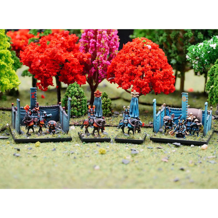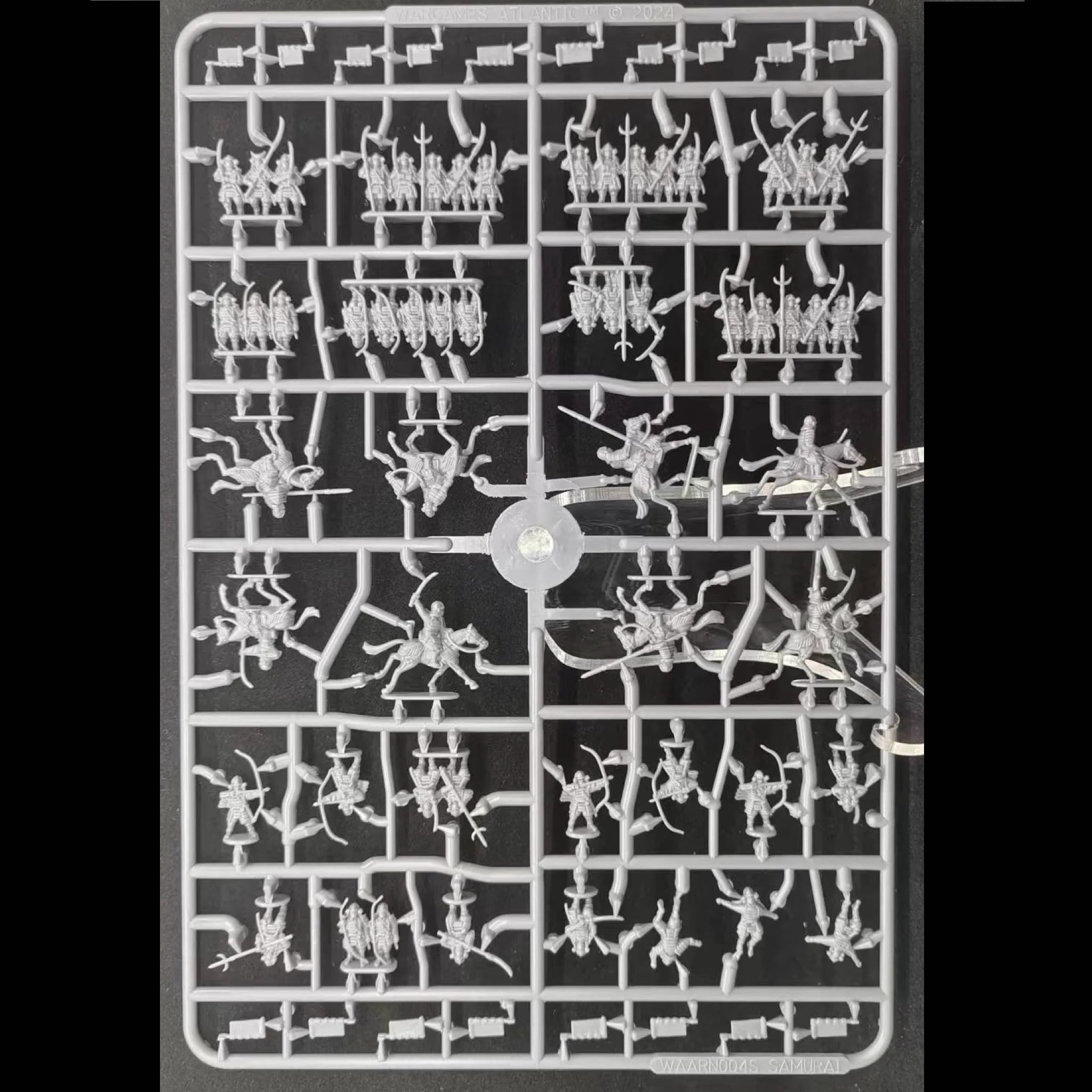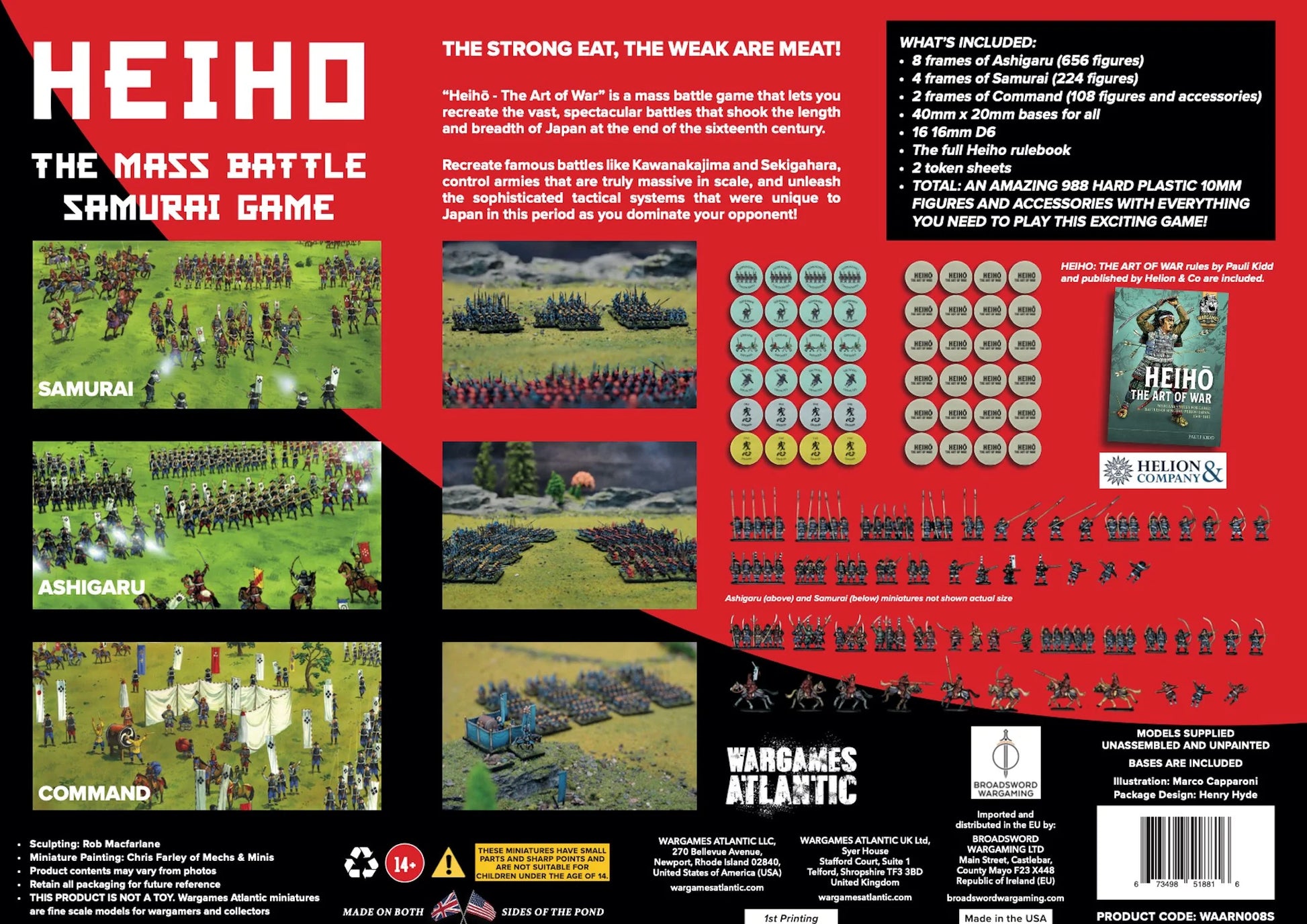 This game includes the equivalent of two Ashigaru, one Samurai, and one Samurai Command box along with enough 40mm x 20mm bases for all. A fantastic value!
