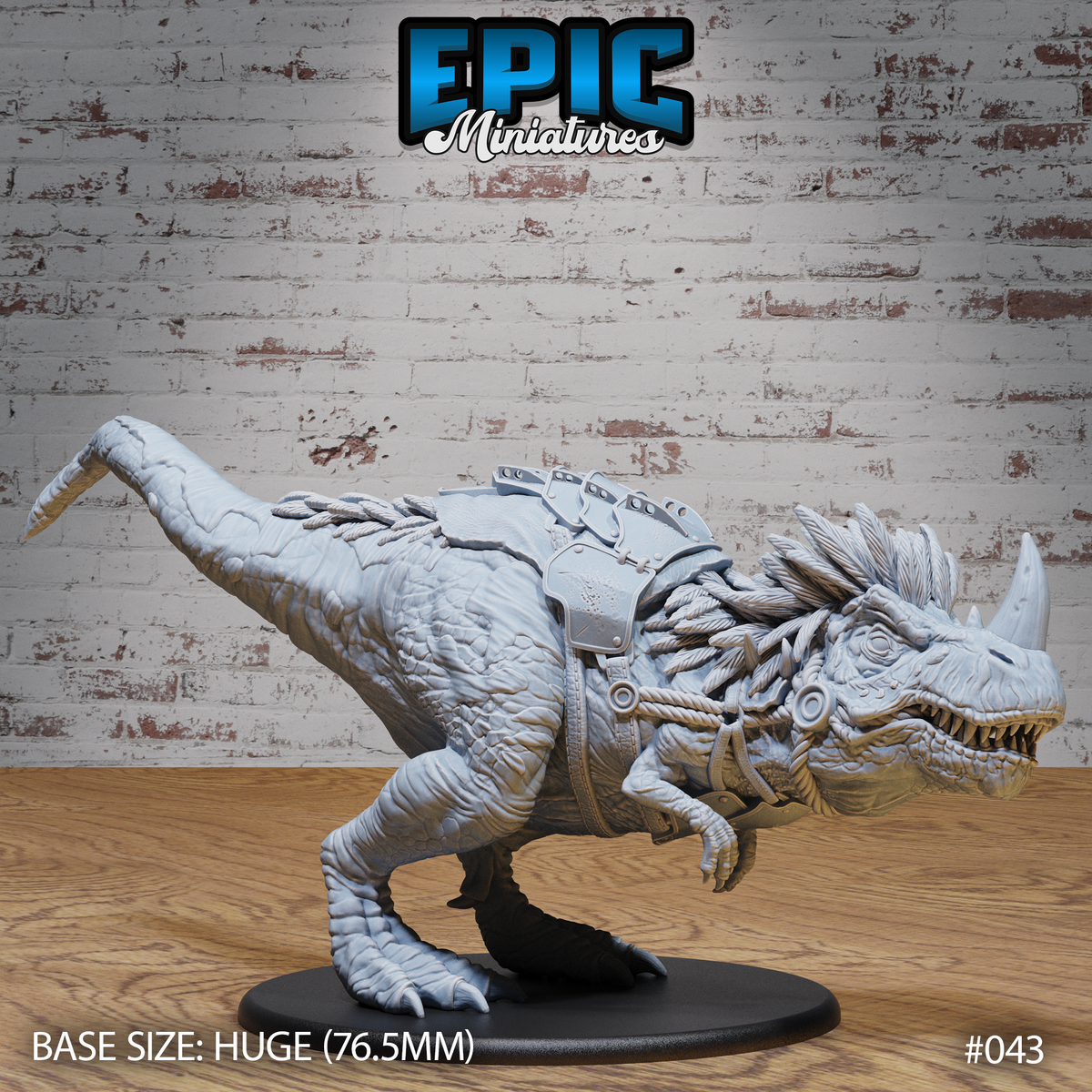 One 3D printed Horned Rex - 2 variations with base in 32mm scale. Other scales available including 28mm. Huge Size.