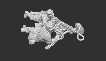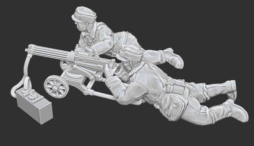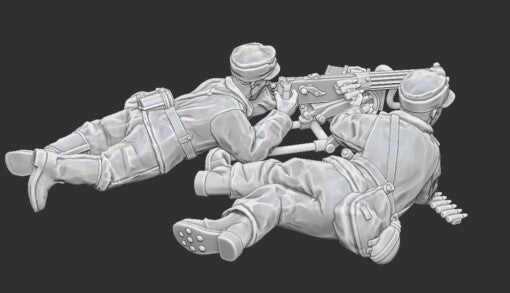 Two man 3D Printed Finnish Maxim MG team in summer uniforms. Includes two miniatures and bases. Scale 1/56. - 28mm. Other scales available.