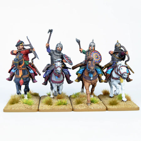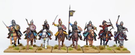 These represent the Seljuk and Syrian heavy cavalry of the 12th to 13th Centuries. There's a mix of armour styles of mail and lamellar and varying helmets from all enclosing mail hoods with elaborate spiked helmets to open faced helmets with turbans.