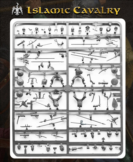 For further flexibility you are able to combine a lot of the heads, shields and weapons from this set with the very versatile Norman cavalry set to create some more varieties of Arab cavalry. Islamic armies made great use of captured Crusader armour, weapons and shields so there is no reason a Norman cavalry figure with the addition of a turbaned head, Islamic shield and weapon arm could not ride along in your Fatamid Egyptian cavalry units.
