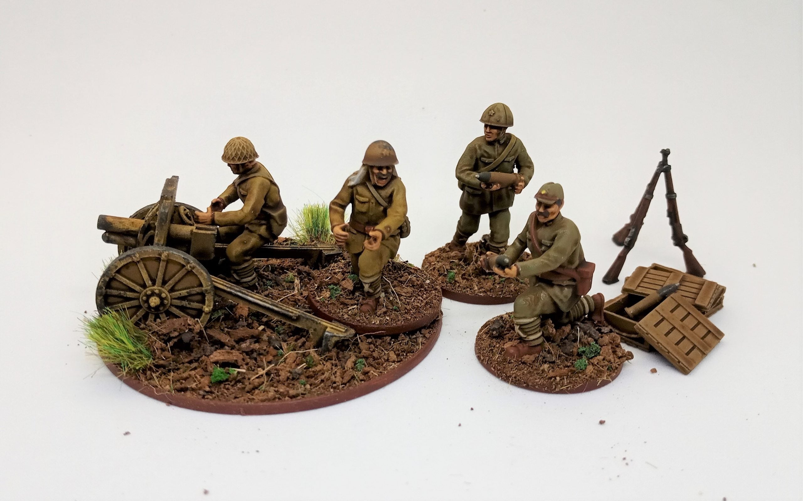 This set is a selection of a Japanese generic artillery crew with varied ammunition and crates in 28mm scale.
