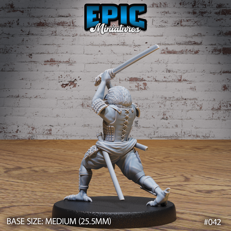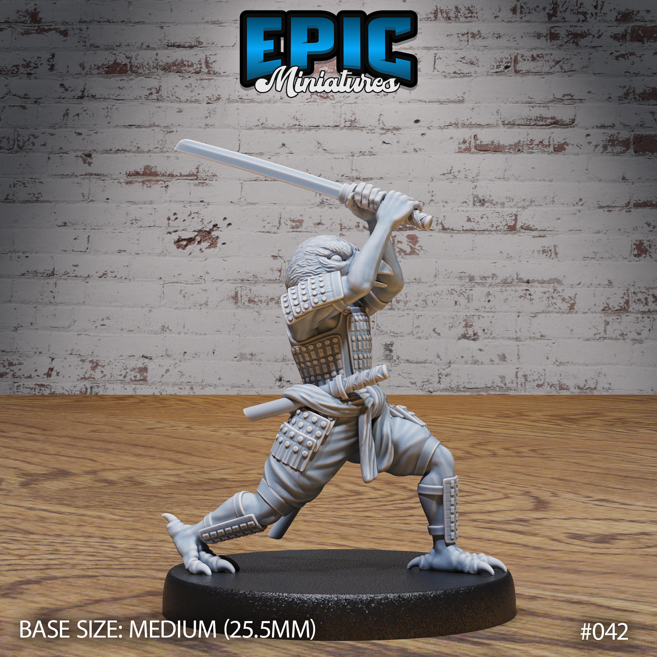 One 3d printed Kenku Bird Tribe Samurai, with base in 32mm scale. Other scales available including 28mm. Medium Size.