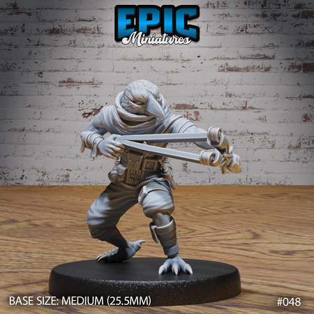 One 3d printed Kenku Bird Tribe Slingshot, with base in 32mm scale. Other scales available including 28mm. Medium Size.