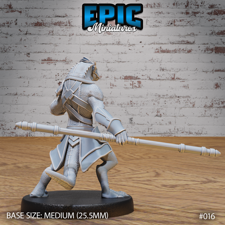 One 3D printed Lizard Folk Army Monk, with base in 32mm scale. Other scales available including 28mm. Medium Size.
