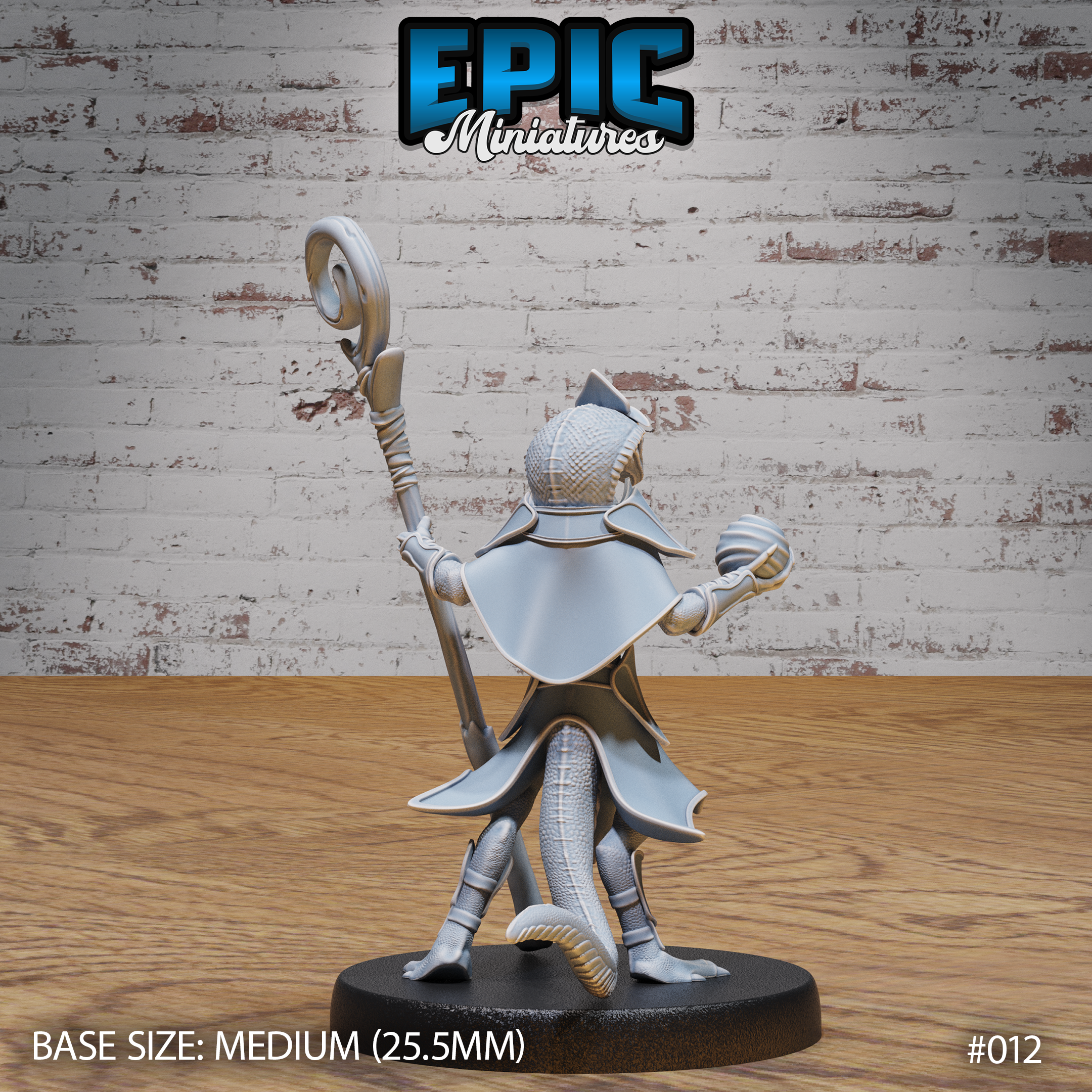 One 3D printed Lizard Folk Army Sorcerer, with base in 32mm scale. Other scales available including 28mm. Medium Size.