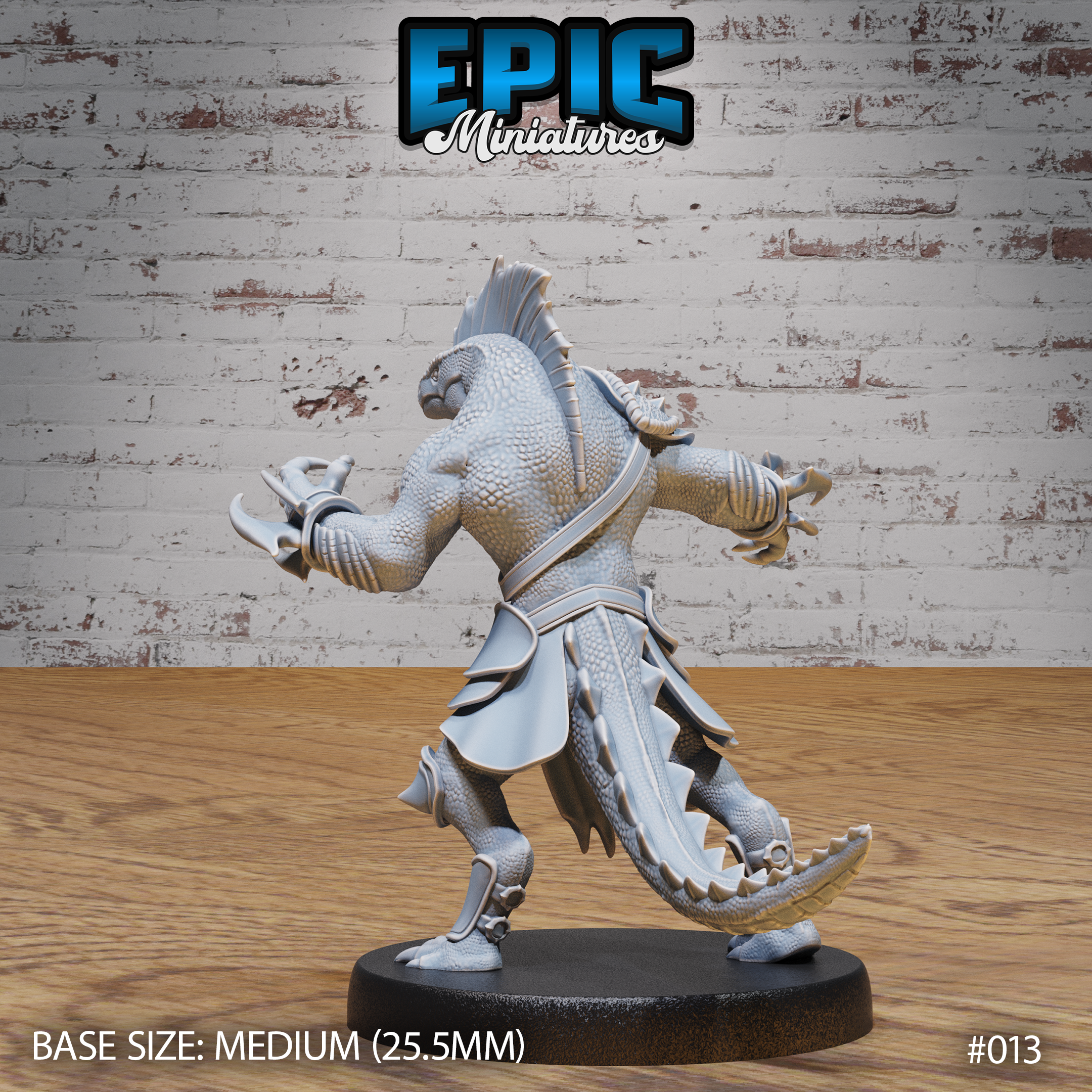One 3D printed Lizard Folk Army with Claws, with base in 32mm scale. Other scales available including 28mm. Medium Size.