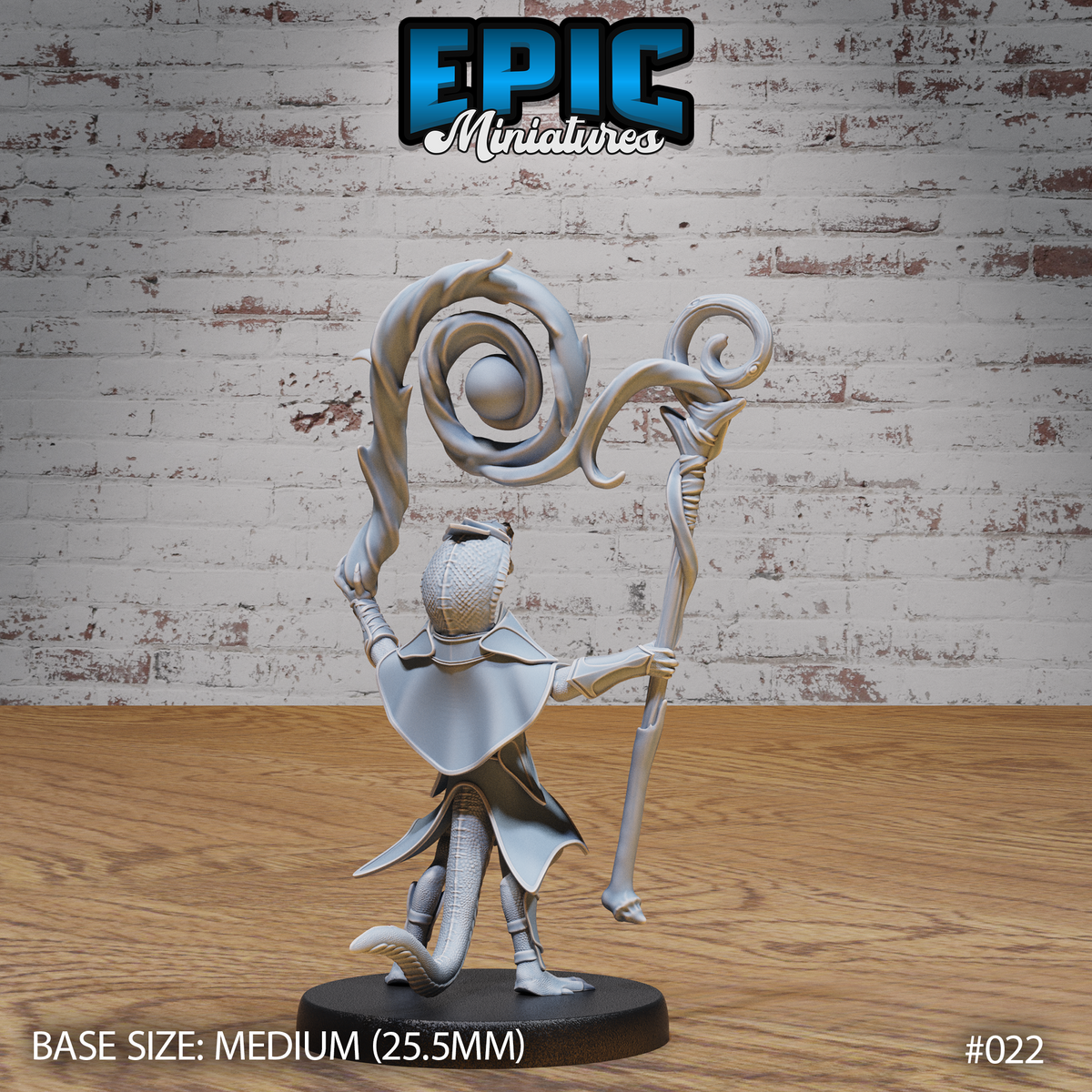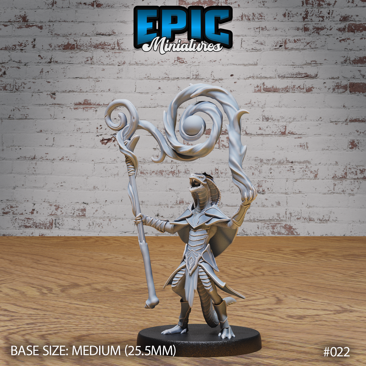 One 3D printed Lizard Folk Army Wizard, with base in 32mm scale. Other scales available including 28mm. Medium Size.