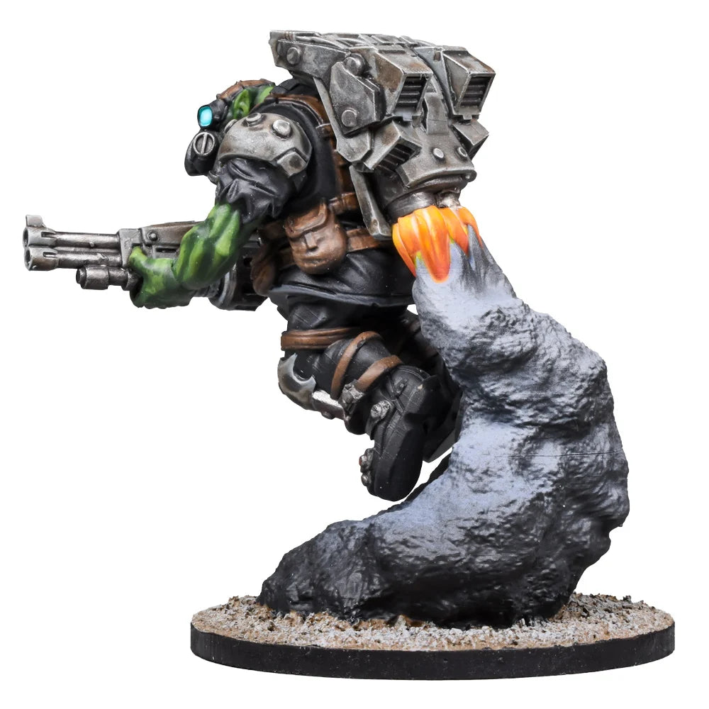 Although they’re not capable of true flight, the speed and manoeuvrability afforded by their jump packs make the Skyscrapers valued assault troops for Marauder generals. Few forces are prepared for the sudden impact and close range fire of a jet-propelled commando.