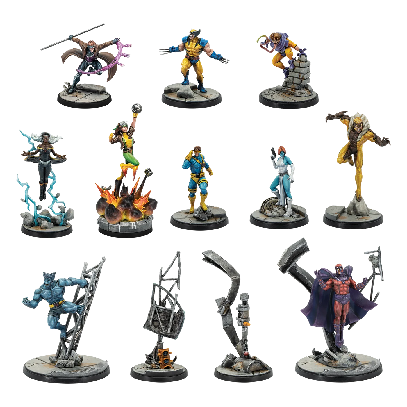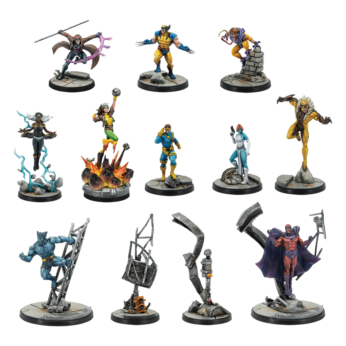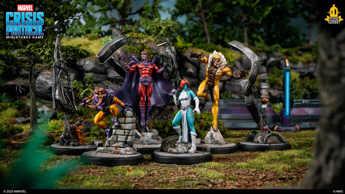 A full roster of some of the most iconic heroes and villains from Marvel’s X-Men are joining forces to show their foes the true power of mutantkind! This Starter Set contains all the miniatures, Character Stat Cards, and Team Tactic Cards for the following characters: Cyclops, Wolverine, Storm, Beast, Rogue, Gambit, Magneto, Toad, Mystique, and Sabretooth. Also included are Crisis Cards and all the tokens, measuring tools, and dice needed to play. Players interested in getting into Marvel: Crisis Protocol will find that Starter Sets are the perfect starting place for a single player.