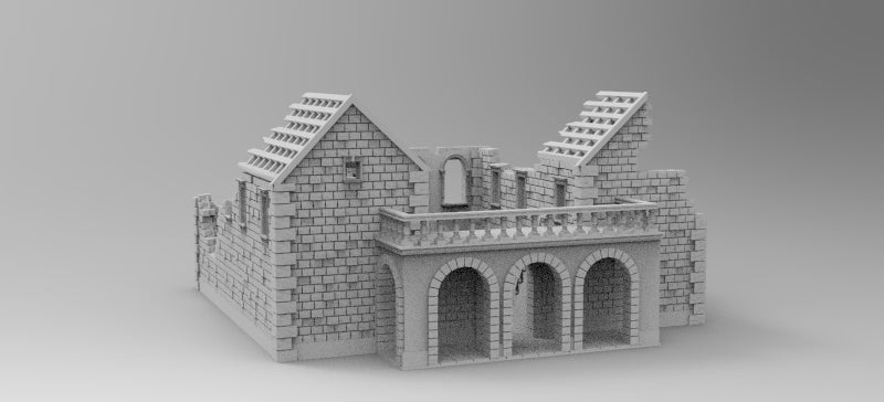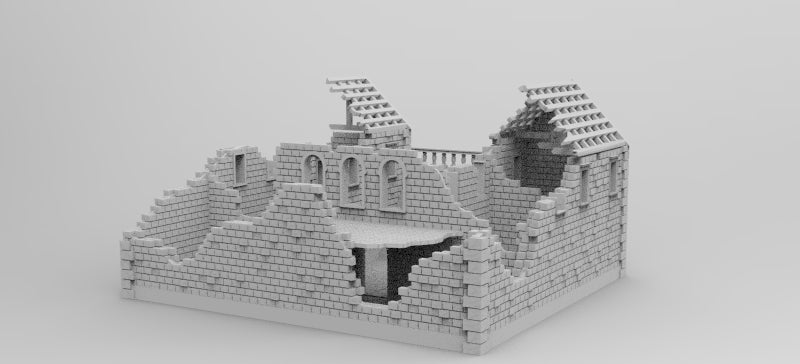 Monte Cassino ruins part 10. This is a large center piece building of ruins perfect for battles in the Mediterranean. Also good for other time periods. Scale is 1/56. Ask about other scales.