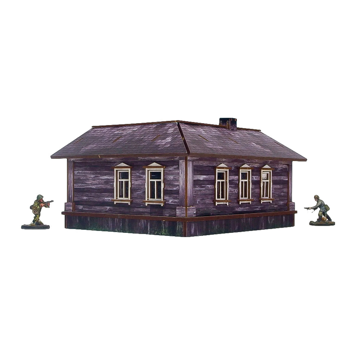 Multicolour pre-painted (UV-printed) WW2 Ostfront (East Front) Village Dom (House) - a building with an accessible colourful interior and removable roof. It is large enough to fit a whole infantry squad inside. Pre-cut acrylic transparent windowpanes included. Option to assemble with open or closed doors.