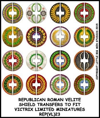 16 Roman shield transfers to fit Victrix limited range of Republican Romans.