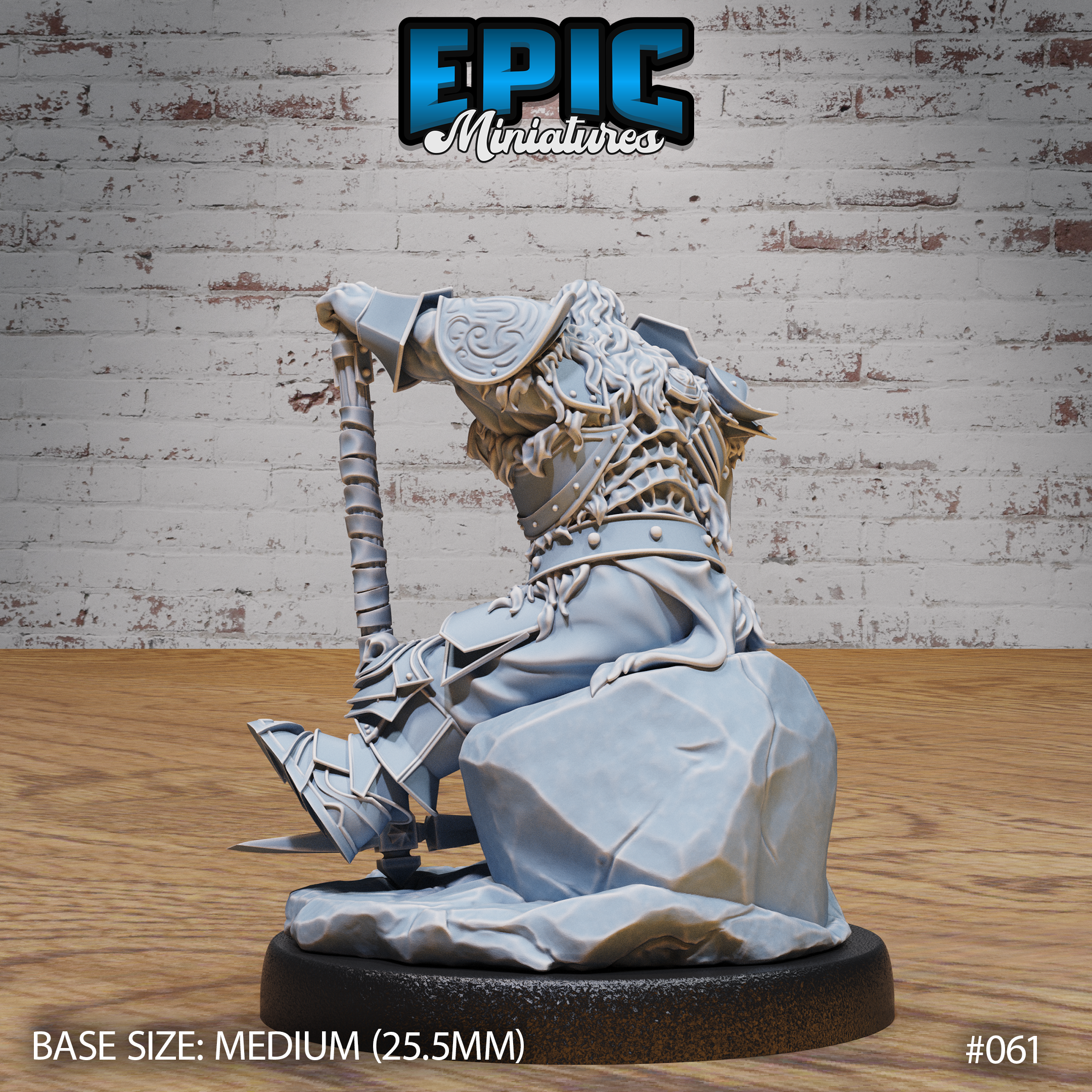 One 3D printed Royal Dwarf Rest with base in 32mm scale. Other scales available including 28mm. Medium Size.