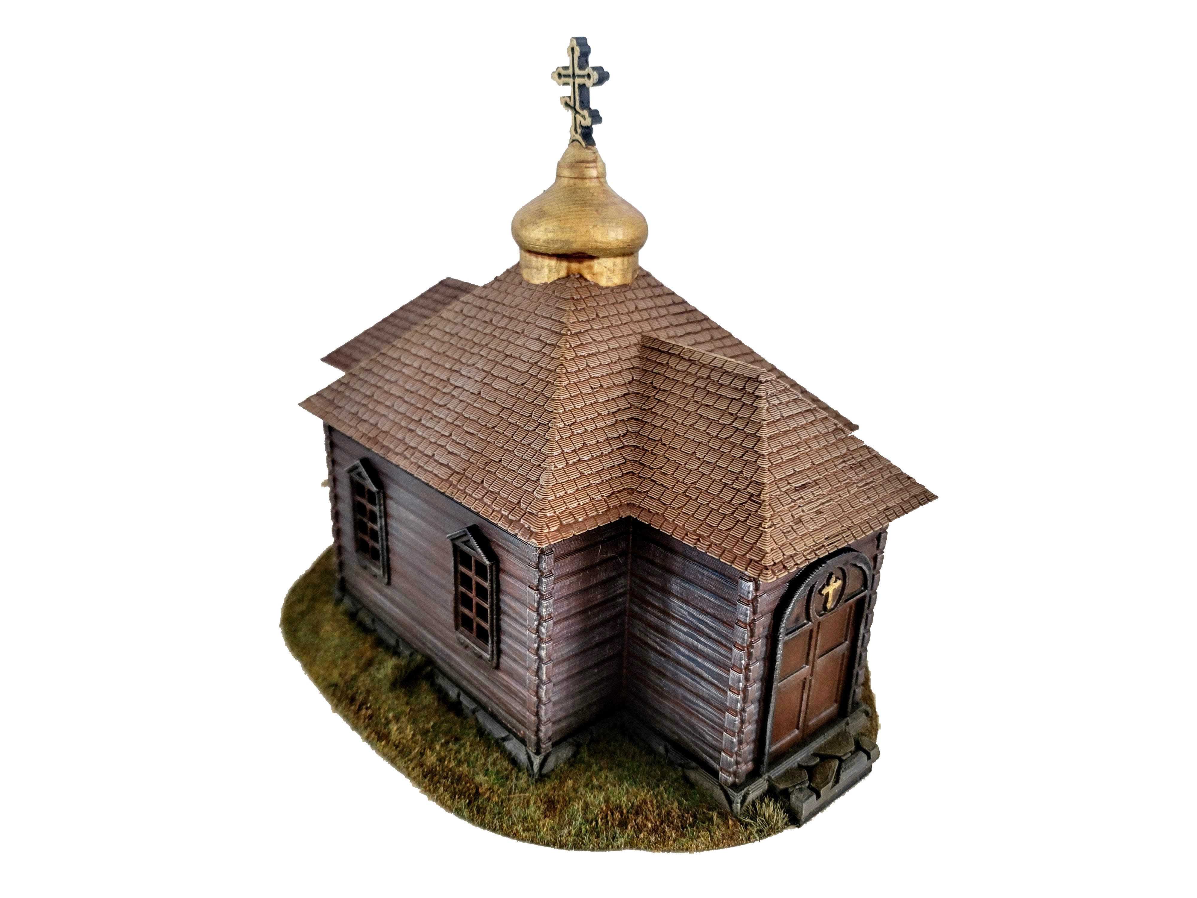 Russian Rural Church model good for the Russian theatre. Also good for multiple time periods. Scale is 1/56. Ask about other scales.