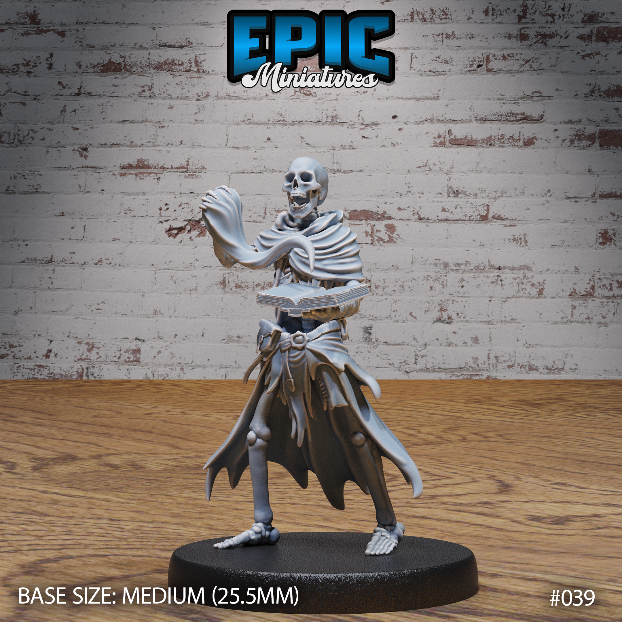 One 3d printed Skeleton Army Spellbook Casting, with base in 32mm scale. Other scales available including 28mm. Medium Size.